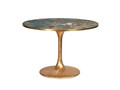 Дизайнерский обеденный стол из искусственного мрамора эффектно дополнит стильный интерьер обеденной зоны, внесет нотку роскоши в обстановку столовой или гостиной. Столешница с имитацией текстуры благородного камня установлена на изящную ножку из нержавеющей стали. Конструкция устойчивая и изящная, смотрится дорого и статусно. Обеденный стол под мрамор станет украшением интерьера в стиле ар-деко, неоклассика, шебби-шик, авангард. Особенно эффектно он смотрится благодаря сочетанию металла цвета золота и имитации камня с голубыми прожилками. Купить этот красивый обеденный стол можно на сайте Garda Decor вместе со стульями и другими предметами мебели в похожей стилистике.